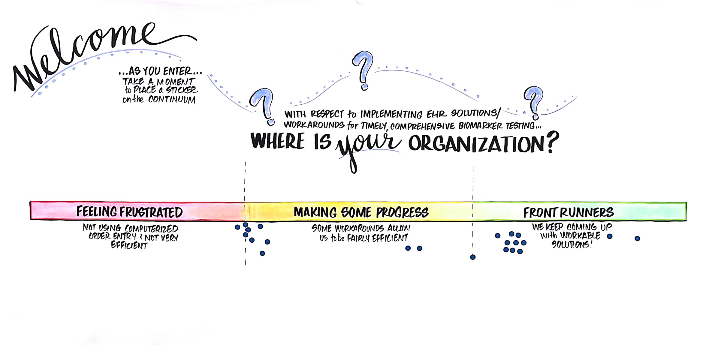 As attendees arrived, they were invited to share where their organization was with respect to EHR integrations by placing a sticker on a door entry chart.