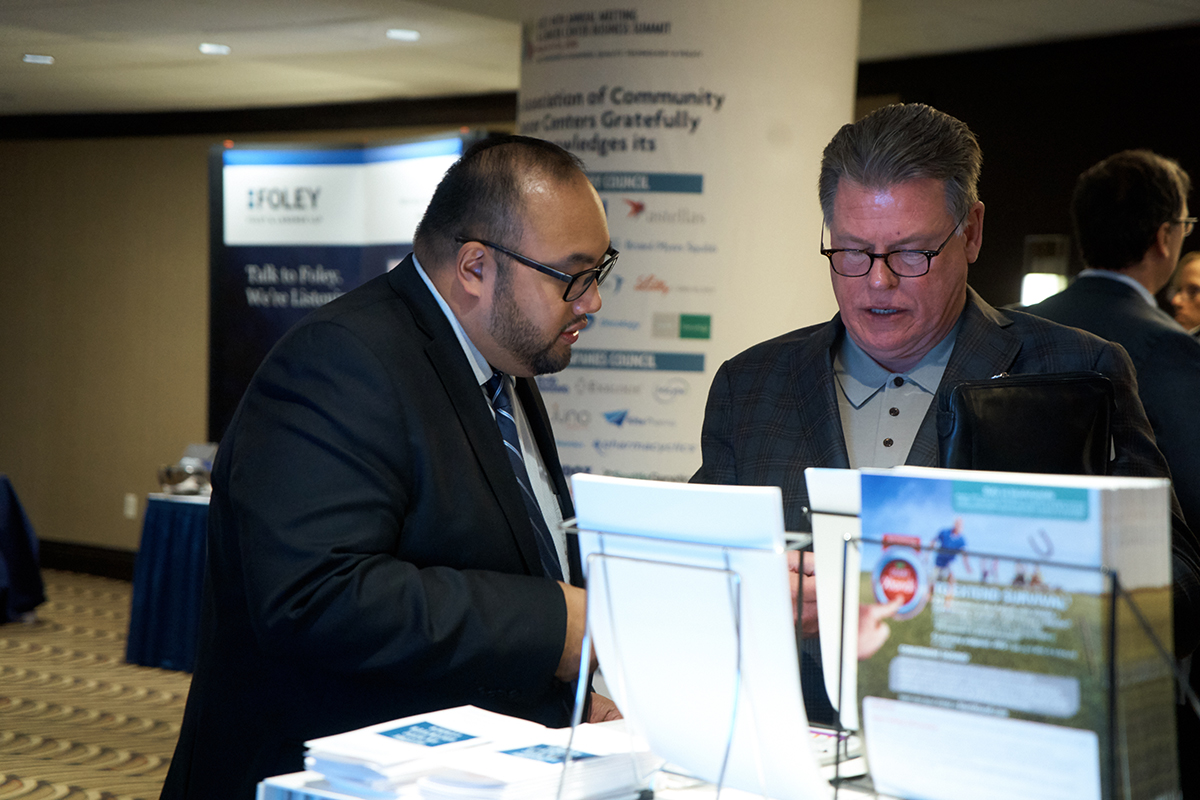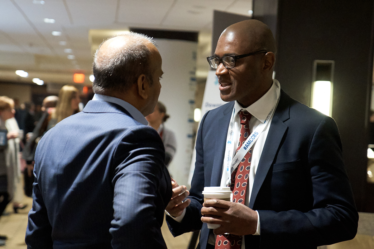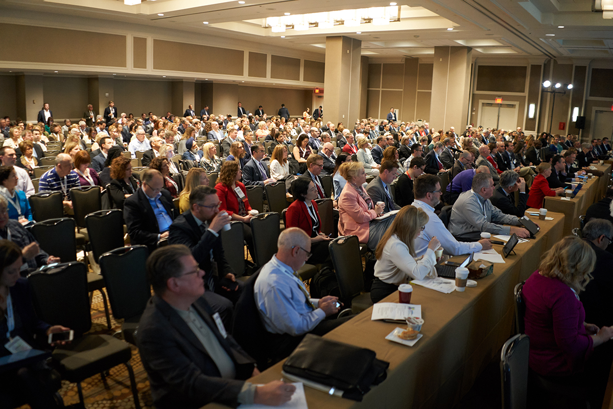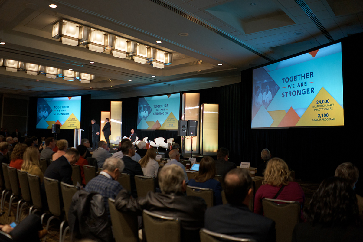 The Exhibit Hall is home to more than 70 exhibitors featuring the latest treatments, technologies, and advancements in cancer care. Attendance is at an all-time high as nearly 900 thought leaders gather to hear cutting-edge approaches to cancer care delivery. Attendees navigate to their tracks of choice during the meeting breakout sessions. Attendees network with other oncology professionals in the Exhibit Hall. Attendees follow the panelists along by accessing their presentations on their laptops via the meeting app. Resources are abundant at the ACCC 44th Annual Meeting & Cancer Center Business Summit. (From left) Stephen S. Grubbs, MD, FASCO; ACCC Immediate Past President Mark S. Soberman, MD, MBA, FACS; and Olalekan Ajayi, PharmD, MBA. (From left) Greg Simon, JD; Steven L. D’Amato, RPh, BSPharm;  ACCC President Tom A. Gallo, MS; and ACCC Immediate Past President Mark S. Soberman, MD, MBA. Attendees tune in to findings from the 2017 Trending Now in Cancer Care survey. Attendees take advantage of the Exhibit Hall for a quick coffee break and some last-minute networking. Attendees download the meeting app to access their schedules, speaker presentations, and more all at the click of a button! Attendees mingle with peers in the Exhibit Hall. Kavita Patel, MD, MS, FACP, Brookings Institution, takes a moment to interview with press. Harlan Levine, MD, City of Hope, opens his panel session with a slide showing CAR T-cells destroying cancer cells. Attendees read up on some of the hottest technologies in the oncology space. Kavita Patel, MD, MS, FACP, Brookings Institution, moderates her panelists as they prepare to present on “The Convergence of the “Big Data” Explosion, Workforce Shortages, Clinical Advancements, and Payment Reform.” Attendees take notes as speakers share insights for reducing redundancies in care and improving data integration. Audience member takes advantage of the Q & A to engage in a didactic discussion with our panelists. Audience members engage with our panelists as they gear up for some Q&A. Lani Alison, BSN, MS-HCQ PCMH CCE, Regional Cancer Care Associates, LLC, shares her program’s model of care for providing the highest and safest standard of care. Attendees network with other oncology professionals in the Exhibit Hall. Attendees catch up with some coffee and a brief chat before heading into sessions. Attendees are all ears during Thursday’s MIPS and MACRA update in the policy track. Andrew Furlow, JD, Hogan Lovells US LLP, presents on the Quality Payment Program and updates for CY 2018. (Far right) Mark Krasna, MD, Meridian Health System, Ocean Medical Center, moderates his panelists as they share strategies for improving care coordination. Panelists share their ongoing efforts to creating a more patient-centered, cost-efficient, outcome focused health system. Olalekan Ajayi, PharmD, MBA, Welch Cancer Center, Sheridan Memorial Hospital, and Randall Oyer, MD, Lancaster General Hospital, exchange ideas between sessions. ACCC staff share the latest resources and offerings for supporting cancer programs nationwide. Michael V. Seiden, MD, PhD, McKesson Specialty Health and The US Oncology Network, discusses the four daunting challenges in oncology including the need for better tools to improve data collection. Jo Duszkiewicz, RN, MSA, Renown Health Institute for Cancer, discusses her program’s Intake Oncology Coordinator clinic for standardizing the referral process and diagnostic pathways. The Exhibit Hall is full of games, resources, and the latest innovations for facilitating the delivery of cancer care. Mark Liu, Mount Sinai Health System, shares strategies from his program for moving toward high-value care. ACCC showcased its new member-driven campaign with an unveiling of its “Together We Are Stronger” video. Michael Blau, Esq., JD, Foley & Lardner LLP, introduces the first panel session of the day focused on innovation in cancer care delivery. ACCC Immediate Past President Mark S. Soberman, MD, MBA, FACS, Monocacy Health Partners, Frederick Regional Health System, addresses ACCC as an important resource for strengthening cancer programs and protecting patient access to high-quality care. ACCC Executive Director Christian G. Downs, JD, MHA,<br>kicks of the Annual Meeting with a heartfelt<br>“thank-you” to attendees for their important contributions<br>to the program.
