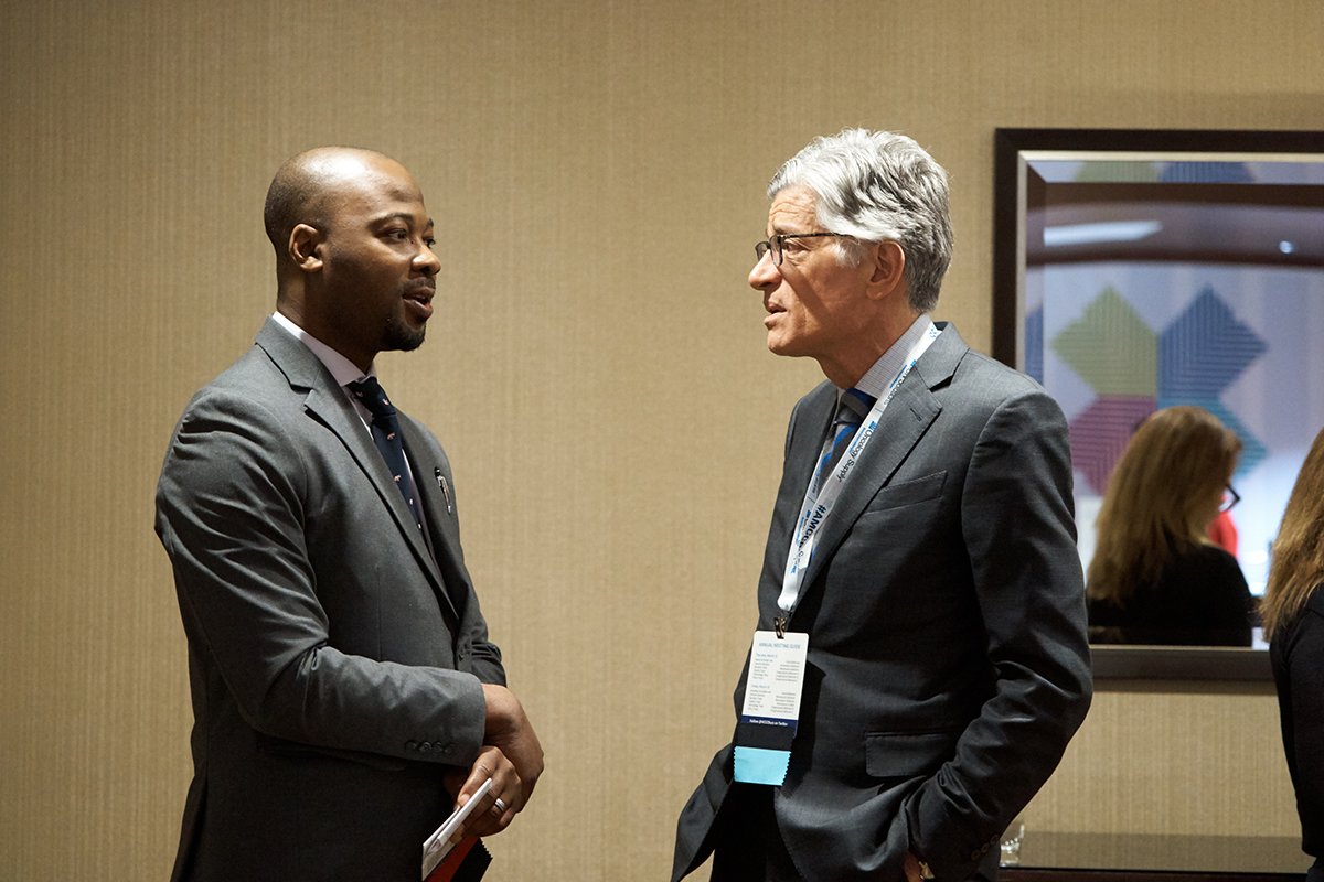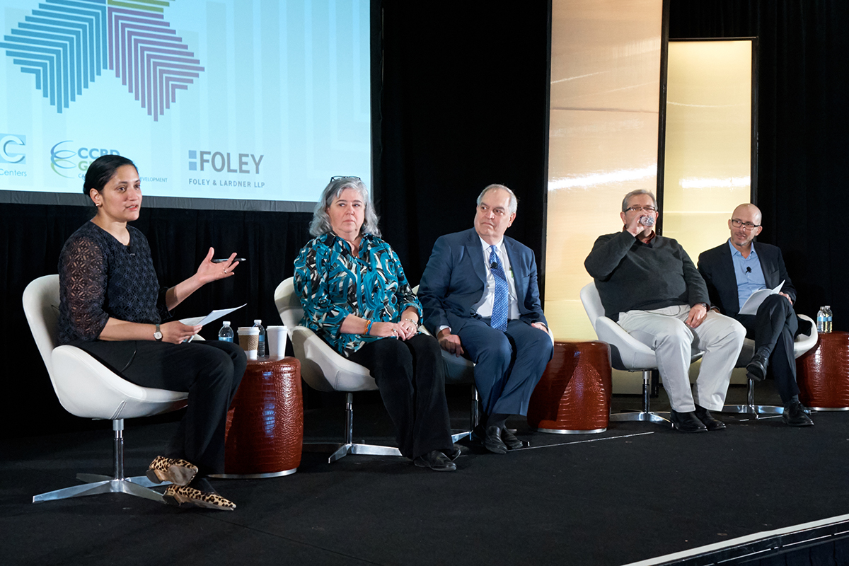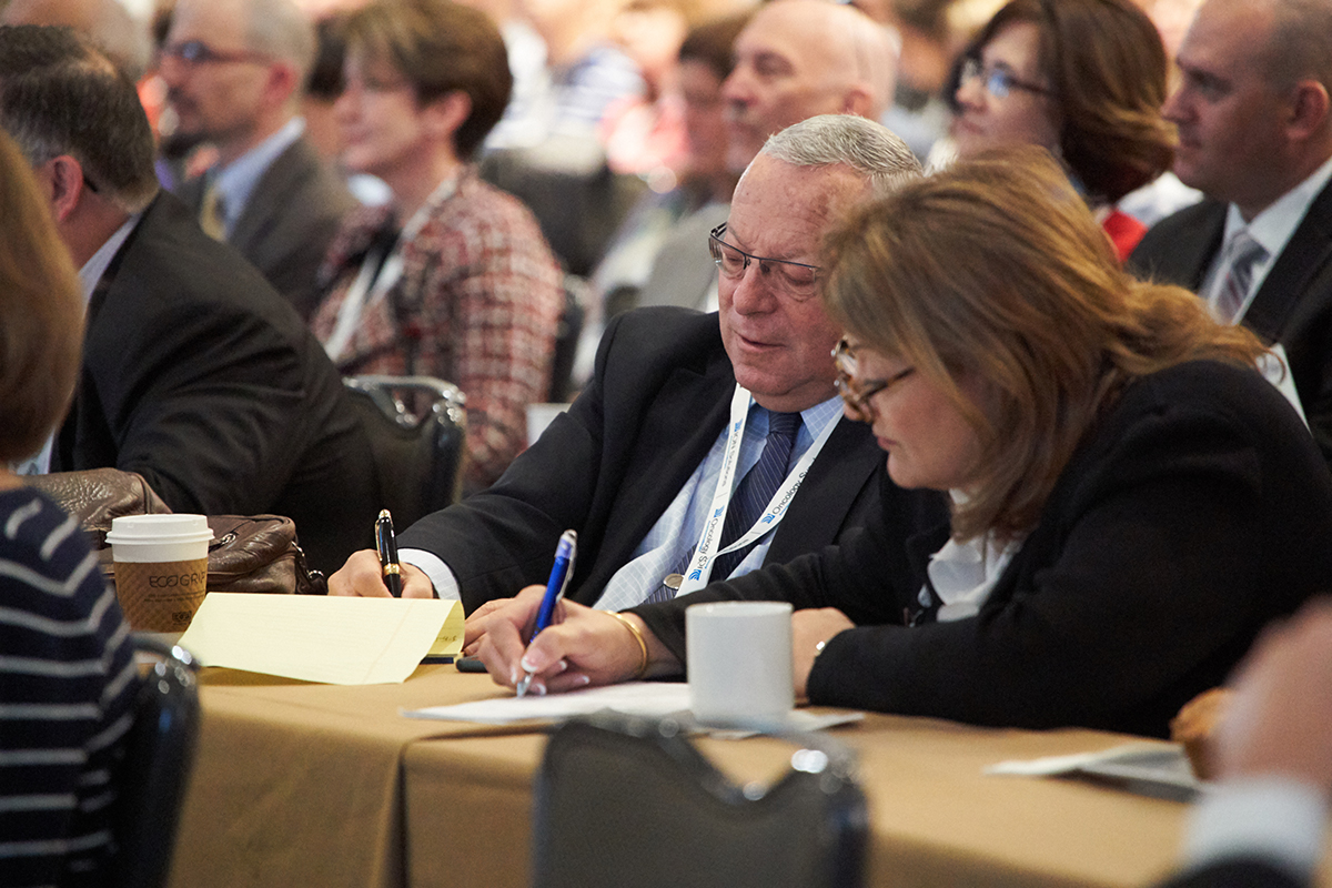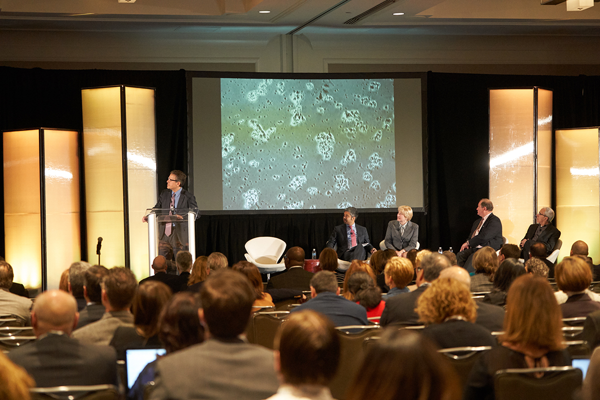 The Exhibit Hall is home to more than 70 exhibitors featuring the latest treatments, technologies, and advancements in cancer care. Attendance is at an all-time high as nearly 900 thought leaders gather to hear cutting-edge approaches to cancer care delivery. Attendees navigate to their tracks of choice during the meeting breakout sessions. Attendees network with other oncology professionals in the Exhibit Hall. Attendees follow the panelists along by accessing their presentations on their laptops via the meeting app. Resources are abundant at the ACCC 44th Annual Meeting & Cancer Center Business Summit. (From left) Stephen S. Grubbs, MD, FASCO; ACCC Immediate Past President Mark S. Soberman, MD, MBA, FACS; and Olalekan Ajayi, PharmD, MBA. (From left) Greg Simon, JD; Steven L. D’Amato, RPh, BSPharm;  ACCC President Tom A. Gallo, MS; and ACCC Immediate Past President Mark S. Soberman, MD, MBA. Attendees tune in to findings from the 2017 Trending Now in Cancer Care survey. Attendees take advantage of the Exhibit Hall for a quick coffee break and some last-minute networking. Attendees download the meeting app to access their schedules, speaker presentations, and more all at the click of a button! Attendees mingle with peers in the Exhibit Hall. Kavita Patel, MD, MS, FACP, Brookings Institution, takes a moment to interview with press. Harlan Levine, MD, City of Hope, opens his panel session with a slide showing CAR T-cells destroying cancer cells. Attendees read up on some of the hottest technologies in the oncology space. Kavita Patel, MD, MS, FACP, Brookings Institution, moderates her panelists as they prepare to present on “The Convergence of the “Big Data” Explosion, Workforce Shortages, Clinical Advancements, and Payment Reform.” Attendees take notes as speakers share insights for reducing redundancies in care and improving data integration. Audience member takes advantage of the Q & A to engage in a didactic discussion with our panelists. Audience members engage with our panelists as they gear up for some Q&A. Lani Alison, BSN, MS-HCQ PCMH CCE, Regional Cancer Care Associates, LLC, shares her program’s model of care for providing the highest and safest standard of care. Attendees network with other oncology professionals in the Exhibit Hall. Attendees catch up with some coffee and a brief chat before heading into sessions. Attendees are all ears during Thursday’s MIPS and MACRA update in the policy track. Andrew Furlow, JD, Hogan Lovells US LLP, presents on the Quality Payment Program and updates for CY 2018. (Far right) Mark Krasna, MD, Meridian Health System, Ocean Medical Center, moderates his panelists as they share strategies for improving care coordination. Panelists share their ongoing efforts to creating a more patient-centered, cost-efficient, outcome focused health system. Olalekan Ajayi, PharmD, MBA, Welch Cancer Center, Sheridan Memorial Hospital, and Randall Oyer, MD, Lancaster General Hospital, exchange ideas between sessions. ACCC staff share the latest resources and offerings for supporting cancer programs nationwide. Michael V. Seiden, MD, PhD, McKesson Specialty Health and The US Oncology Network, discusses the four daunting challenges in oncology including the need for better tools to improve data collection. Jo Duszkiewicz, RN, MSA, Renown Health Institute for Cancer, discusses her program’s Intake Oncology Coordinator clinic for standardizing the referral process and diagnostic pathways. The Exhibit Hall is full of games, resources, and the latest innovations for facilitating the delivery of cancer care. Mark Liu, Mount Sinai Health System, shares strategies from his program for moving toward high-value care. ACCC showcased its new member-driven campaign with an unveiling of its “Together We Are Stronger” video. Michael Blau, Esq., JD, Foley & Lardner LLP, introduces the first panel session of the day focused on innovation in cancer care delivery. ACCC Immediate Past President Mark S. Soberman, MD, MBA, FACS, Monocacy Health Partners, Frederick Regional Health System, addresses ACCC as an important resource for strengthening cancer programs and protecting patient access to high-quality care. ACCC Executive Director Christian G. Downs, JD, MHA,<br>kicks of the Annual Meeting with a heartfelt<br>“thank-you” to attendees for their important contributions<br>to the program.
