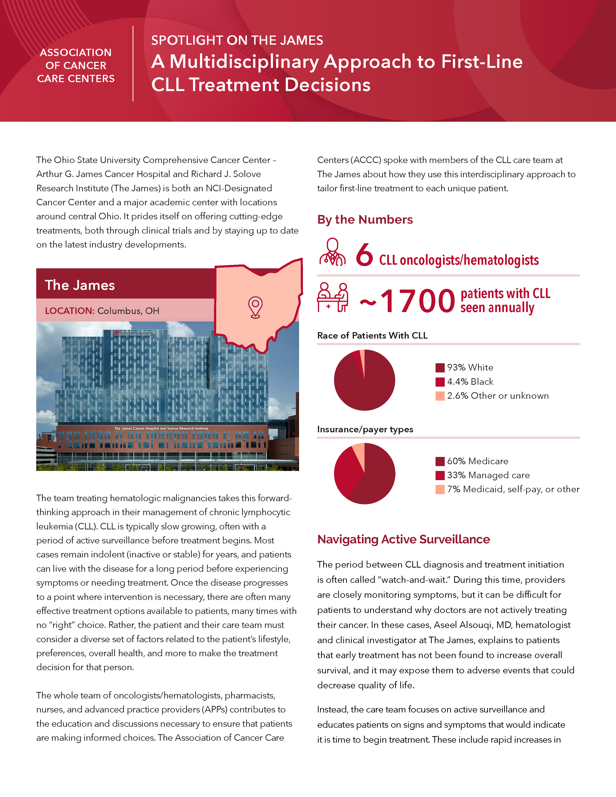 Explore a multidisciplinary, patient-centered approach to first-line CLL care at The Ohio State University Comprehensive Cancer Center – The James, where active surveillance, shared decision-making, and clinical trial access guide treatment..